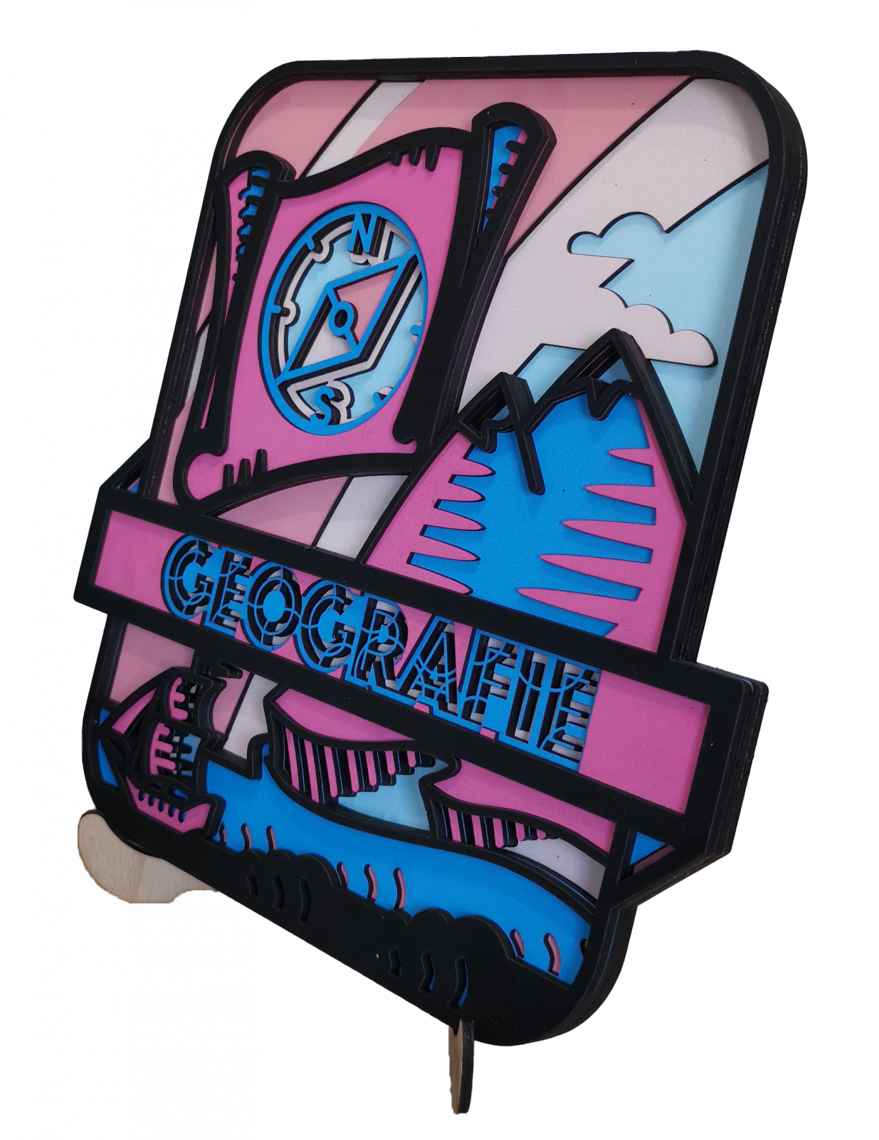 Decoratiunea pentru profesorul de Geografie multistrat 3D este realizata cu multa atentie si pricepere.
