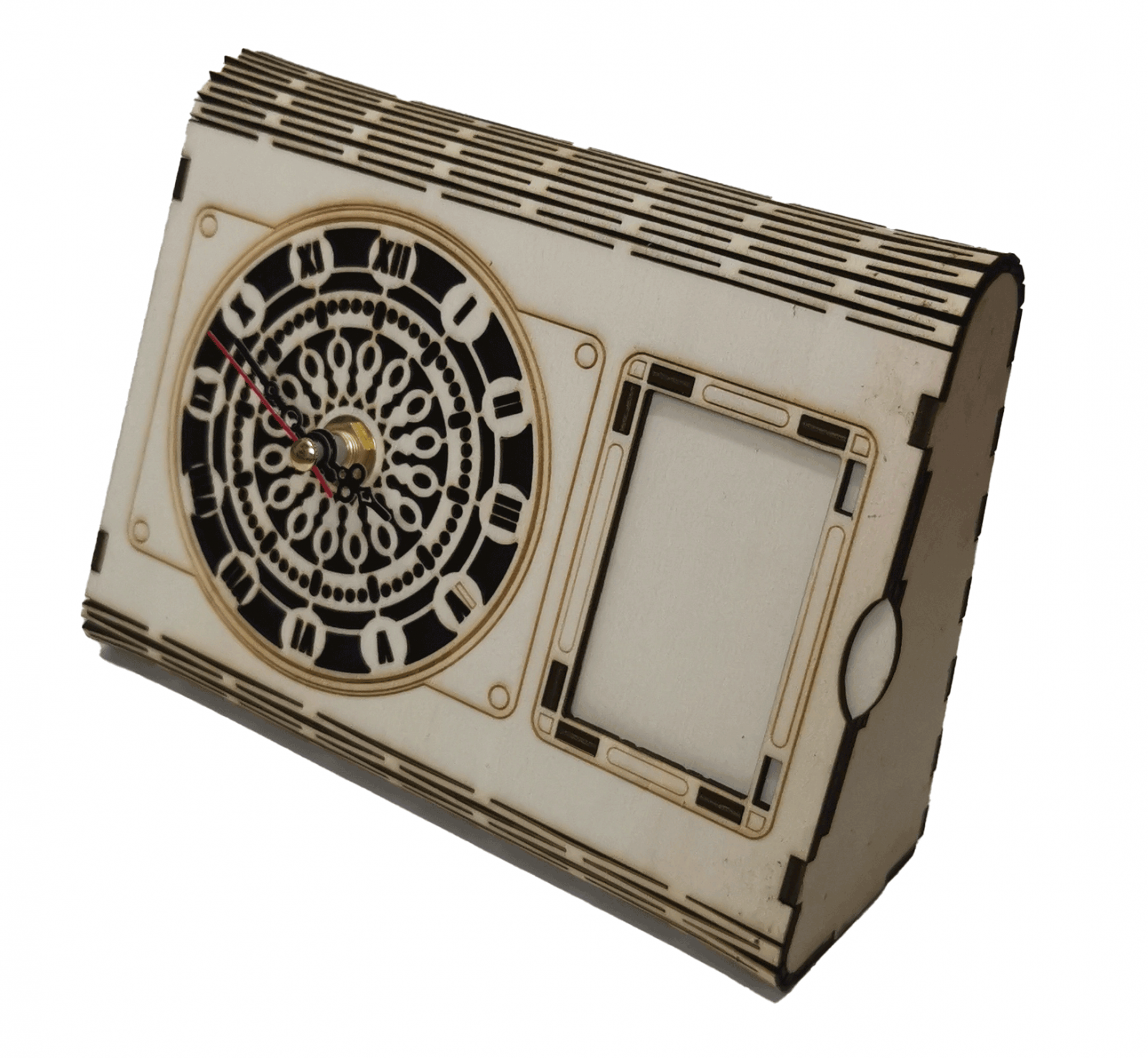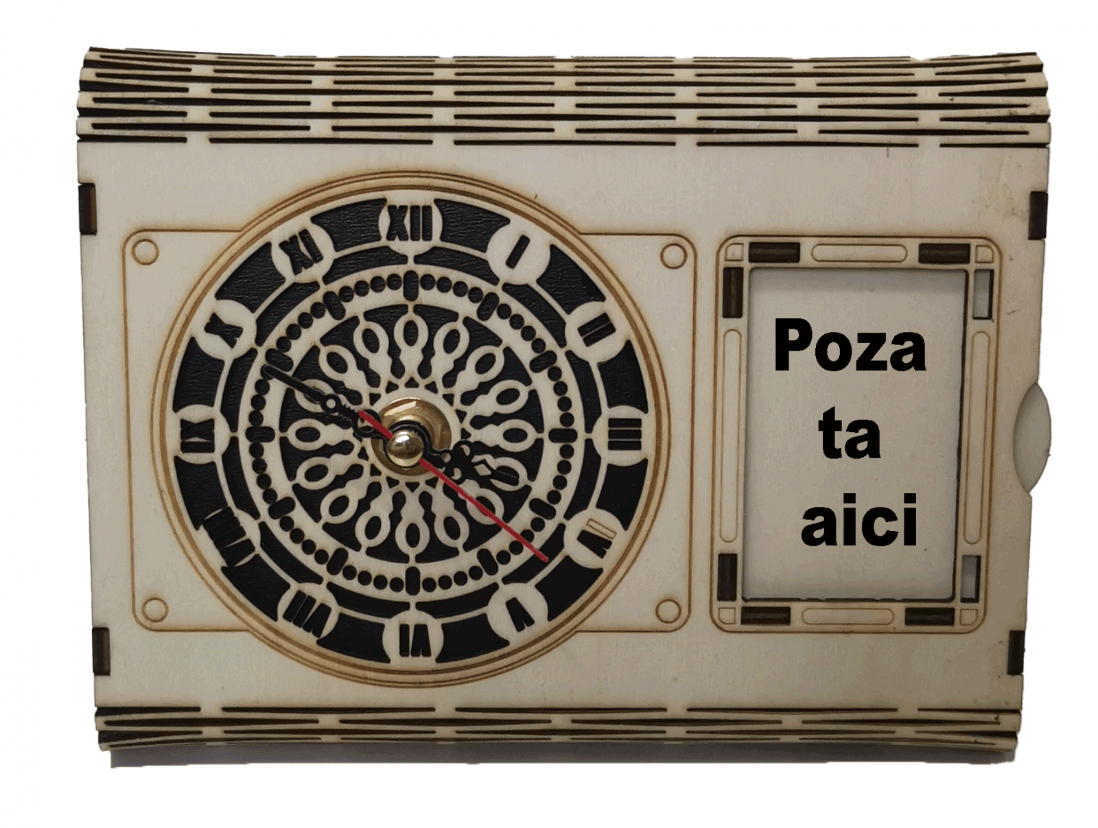 Nice 3D Gifts va ofera cu drag un ceas de masa cu un design expresiv, care te indeamna sa te bucuri de fiecare clipa traita. Realizat minutios din lemn de plop, promite ca va desavarsi amenajarea ta interioara, indicand timpul exact, gratie unui mecansim quartz de precizie!
