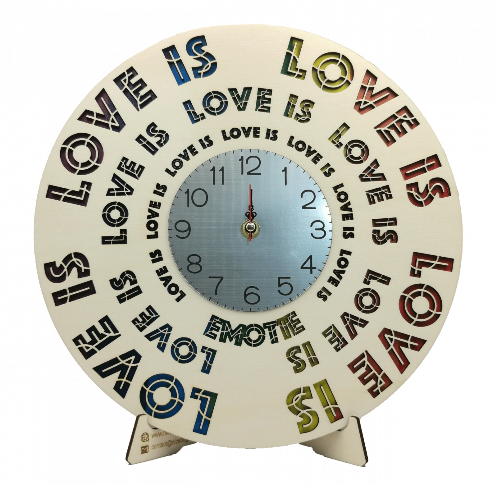 Acest ceas multistrat - LOVE IS cu design elegant, frumos și deosebit va arata grozav pe orice tip de perete. Este un decor original pentru orice camera din casa sau birou atragand atentia oaspetilor si creand o atmosfera de calatorie si descoperire . Va uimi orice prieten sau ruda care il primește.