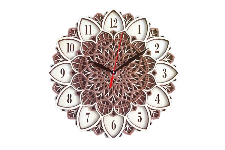 Ceasul este realizat din lemn de plop, cu grosimea de 3 mm, dispus in mai straturi, debitat laser cu o maxima precizie a detaliilor. Straturile din lemn, slefuite si vopsite UV sau manual, imbinate intre ele creandu-se astfel efectul 3D.