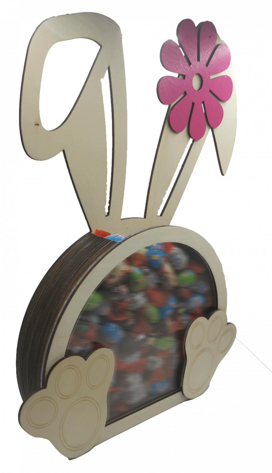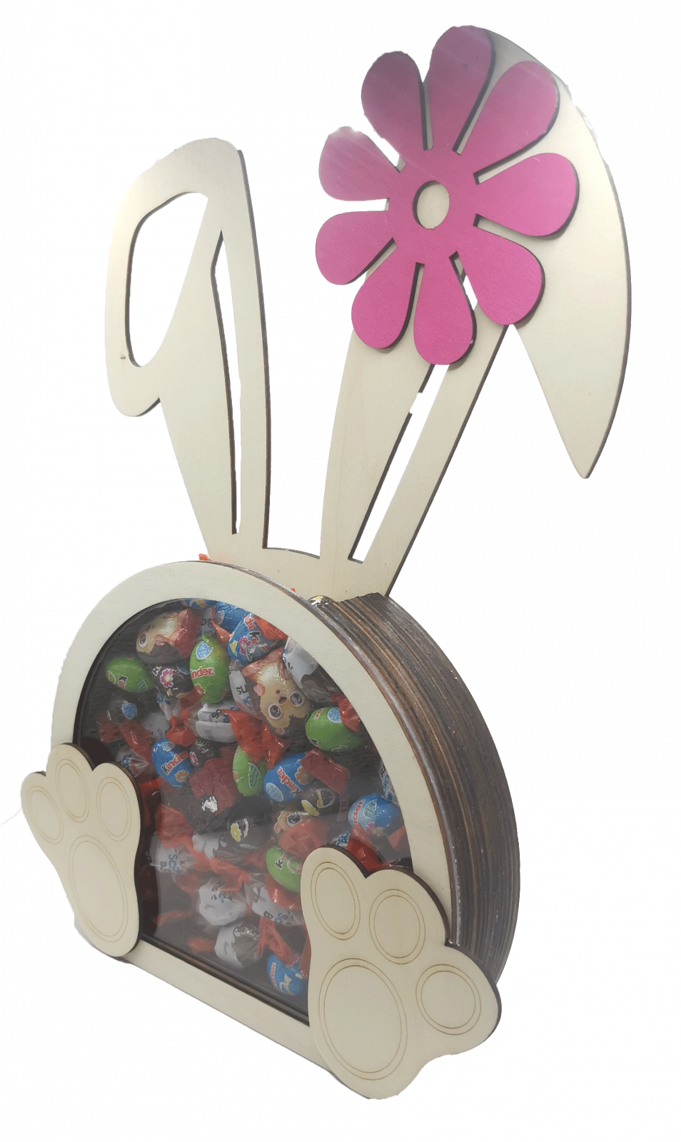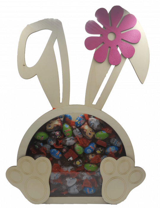 Iepurasul poate fi umplut cu bomboane, latura transparenta fiind din placa acrilica. Acest mic cadou poate aduce zambete pentru oricine il primeste. Bomboanele din iepuras NU sunt incluse, aceste poze sunt doar informative, dar la cerere il putem umple cu bomboane, contra-cost.