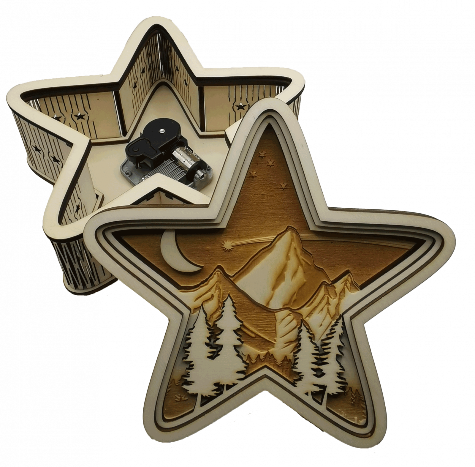Cutia noastra muzicala in forma de stea din lemn de inalta calitate va aduce bucurie familiei, prietenilor si celor dragi. Este cea mai populara cutie muzicala si este iubita de oameni de toate varstele.