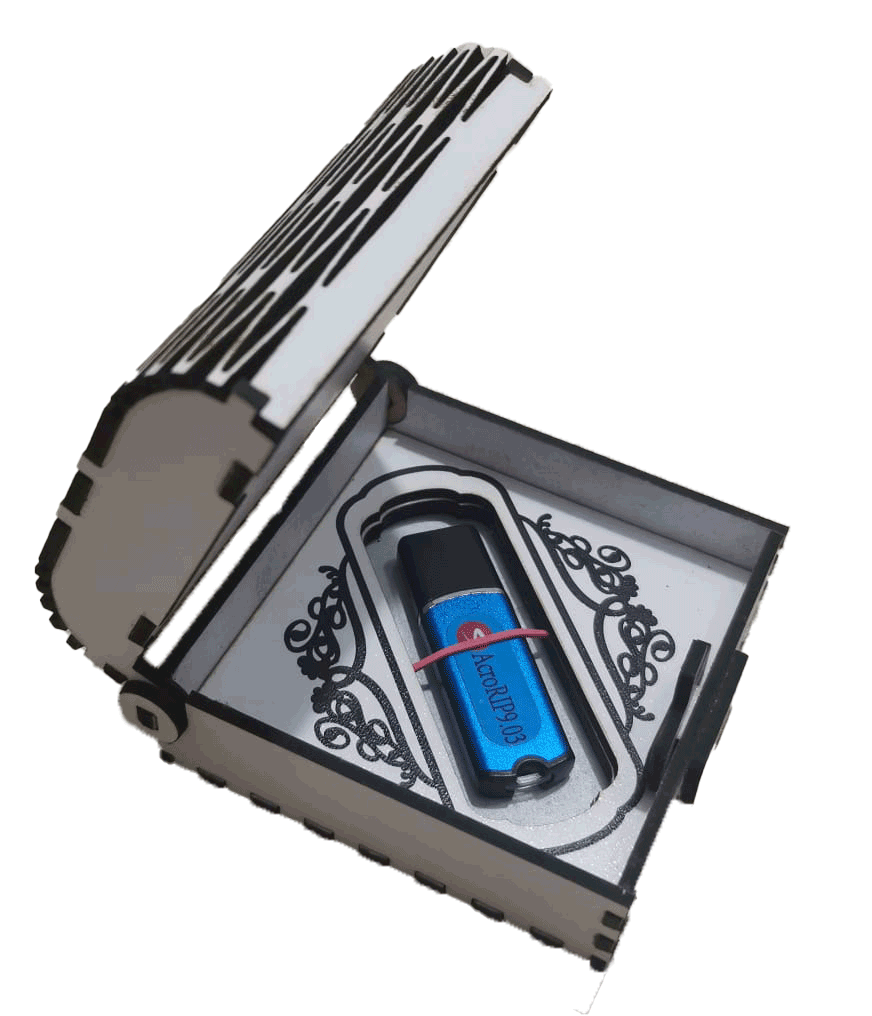 Cutia contine un spatiu dedicat stick-ului USB si un sistem de prindere al acestuia pentru fixarea lui in cutie. Spatiul este unul universal, potrivit pentru orice model de memorie USB.