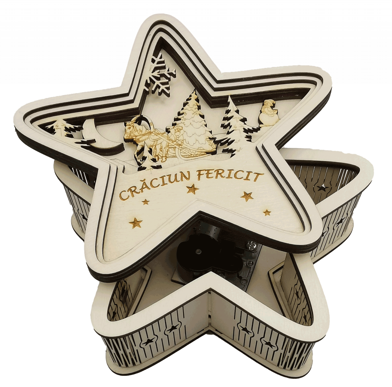 Cutia noastra muzicala in forma de stea din lemn de inalta calitate va aduce bucurie familiei, prietenilor si celor dragi. Este cea mai populara cutie muzicala si este iubita de oameni de toate varstele.