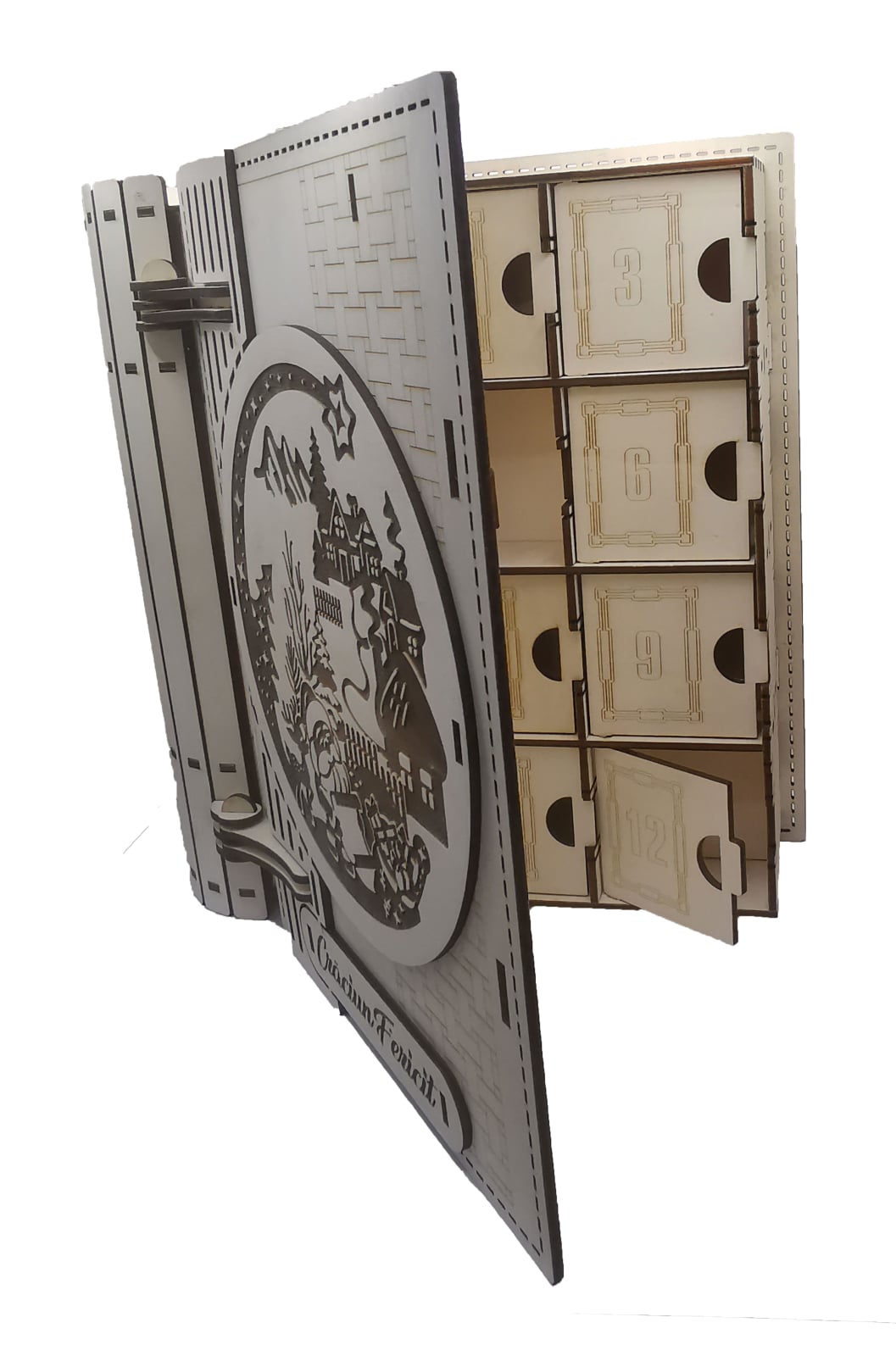 Acest adorabil calendar Advent din lemn, în formă de carte poate fi personalizat pentru a crea un cadou cu adevărat unic pentru micuțul tău, care să-i permită să înceapă numărătoarea inversă până la Crăciun!