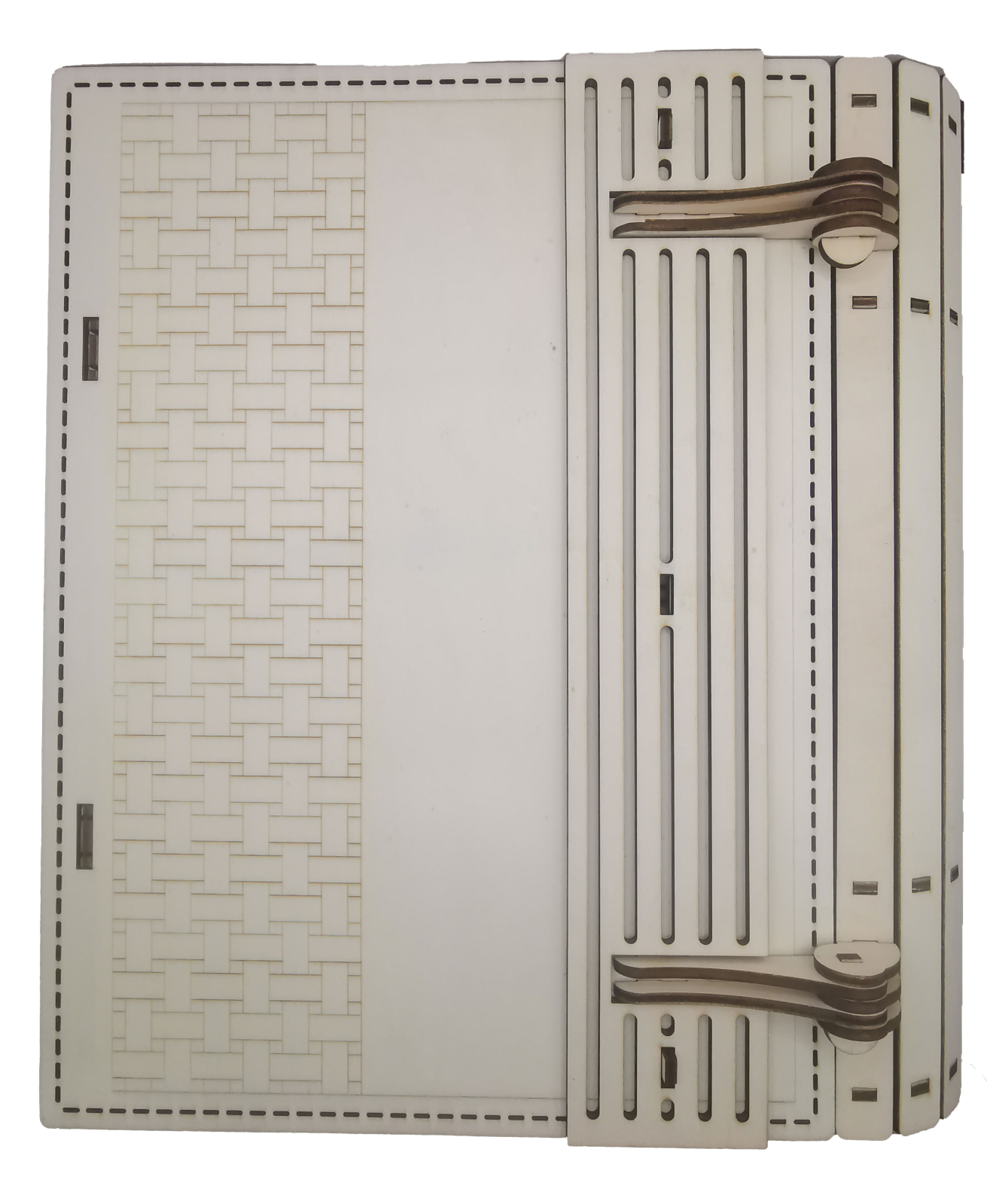 Este realizata din lemn, debitat laser cu o maxima precizie a detaliilor. Straturile din lemn, slefuite si vopsite UV sau manual sunt imbinate intre ele creandu-se astfel efectul 3D.