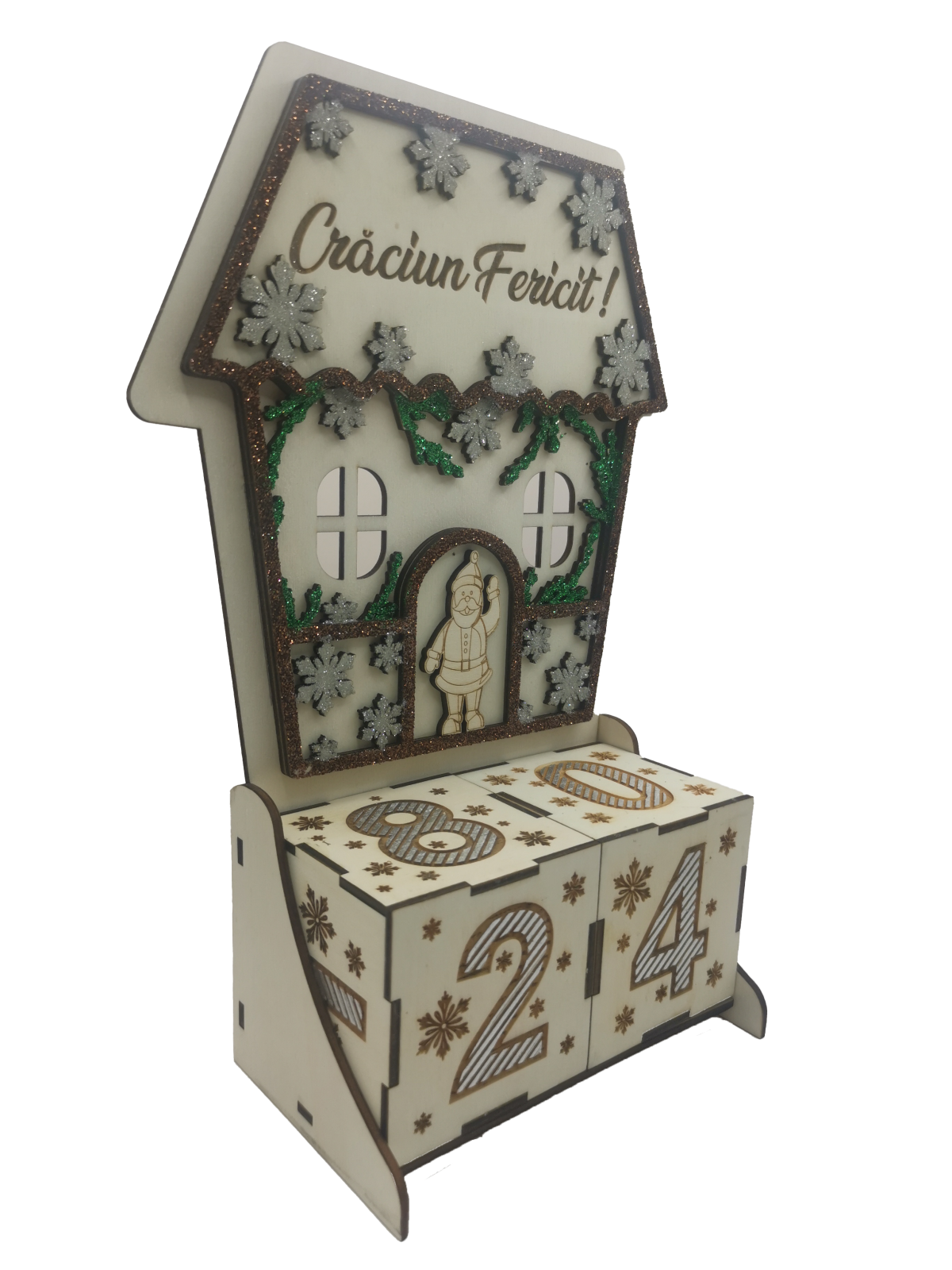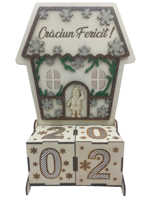 Acest adorabil calendar Advent din lemn, în formă de casa este un cadou cu adevărat unic, care va permite să începeti numărătoarea inversă până la Crăciun! Este dotat cu 2 zaruri din lemn inscriptionate cu numere.