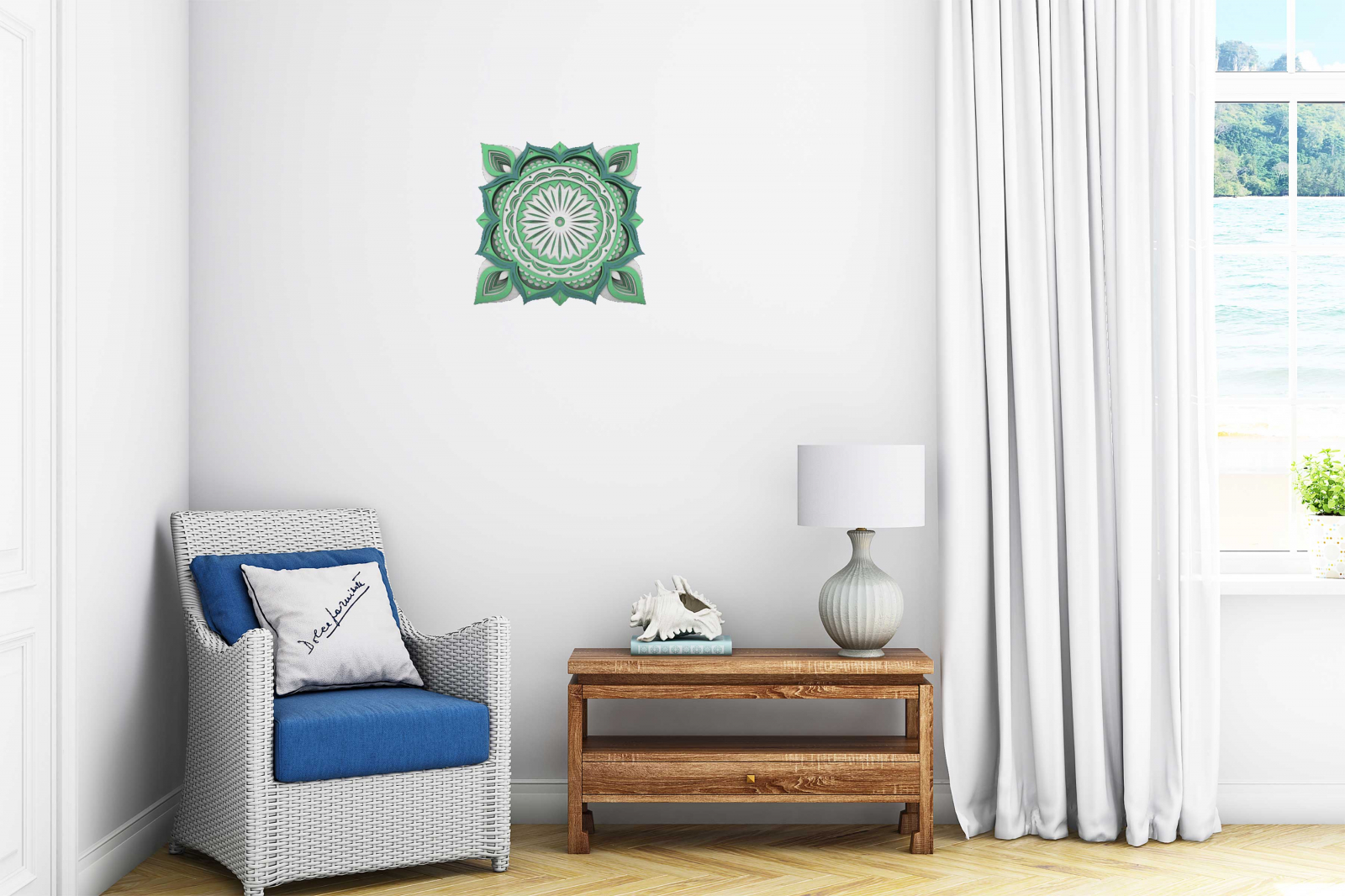 Tabloul este realizat cu multa atentie si pricepere, completeaza decorul camerei in care este montat, dand o nota de eleganta si rafinament. Mandala reprezinta echilibrul dintre  frumusetea interioara si cea exterioara a omului, armonia dintre trup si suflet. Aspectul simetric al mandalei ne capteaza atentia, scopul acesteia fiind de a medita si a ne conecta cu propria fiinta.