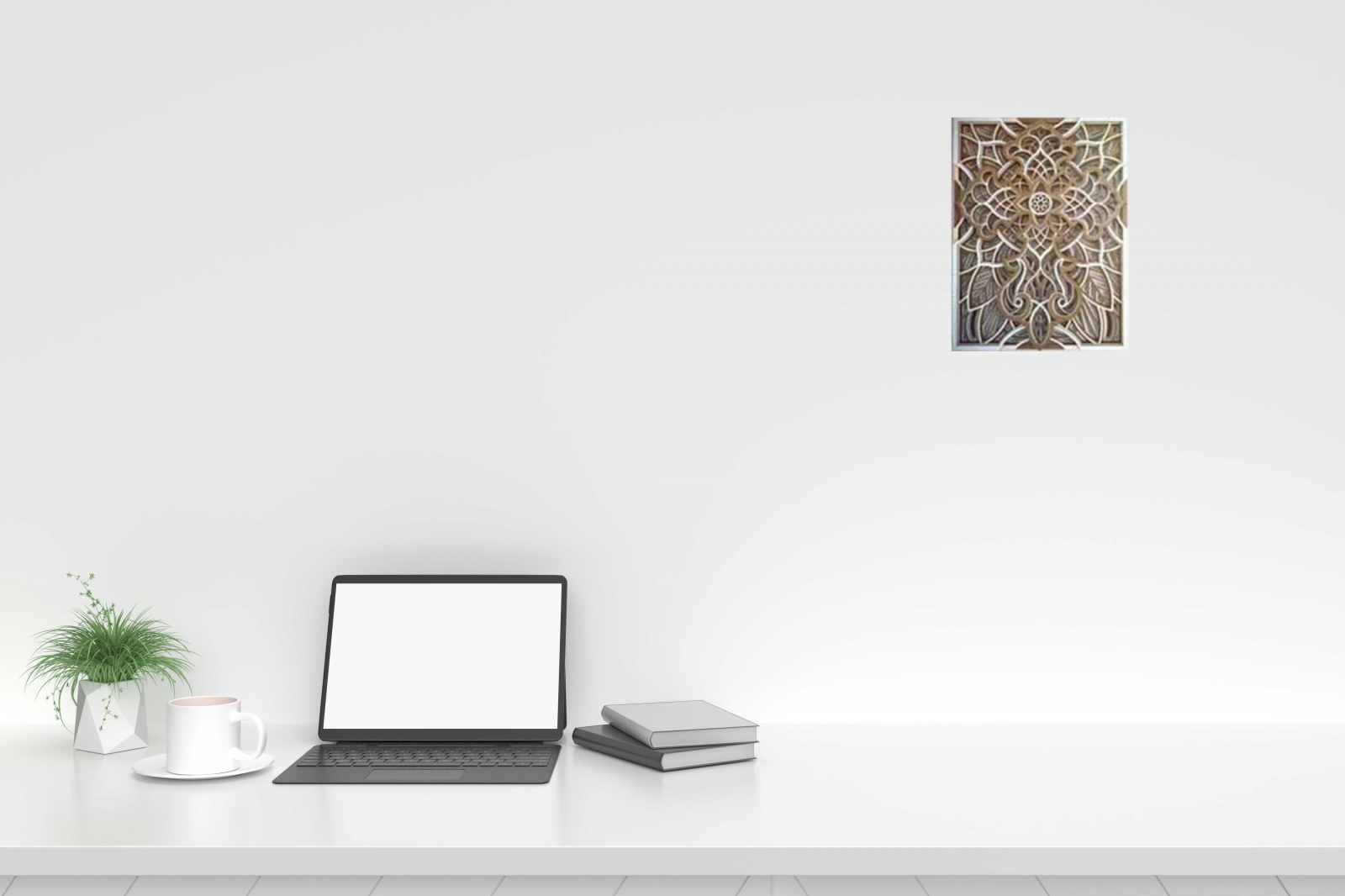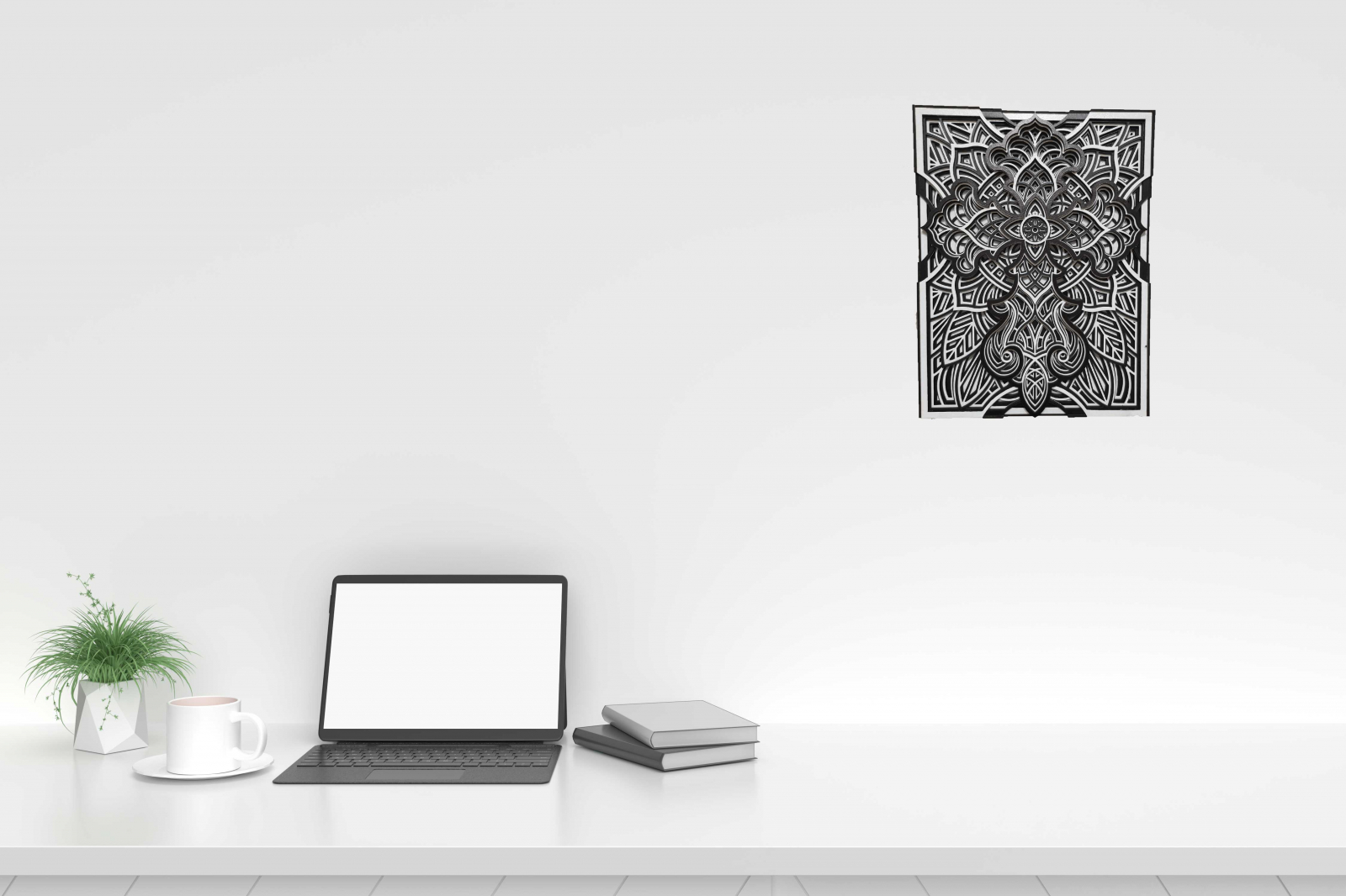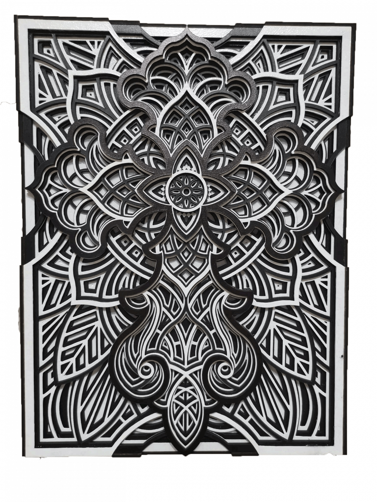 Tabloul este realizat cu multa atentie si pricepere, completeaza decorul camerei in care este montat, dand o nota de eleganta si   rafinament. Mandala reprezinta echilibrul dintre  frumusetea interioara si cea exterioara a omului, armonia dintre trup si suflet.       Aspectul simetric al mandalei ne capteaza atentia, scopul acesteia fiind de a medita si a ne conecta cu propria fiinta.