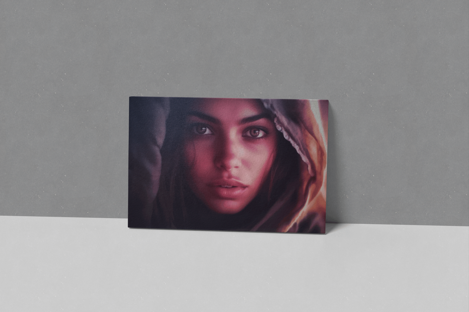 Marginile sunt imbracate din imagine, tabloul avand aspect volumetric; se expune direct, fara rama.