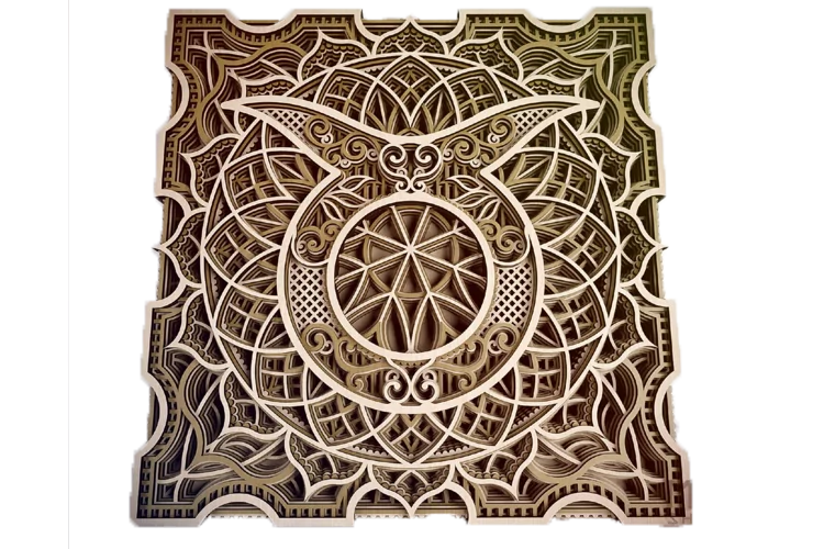 Este realizat din lemn prin debitare laser si suprapus pe mai multe straturi si printat UV.