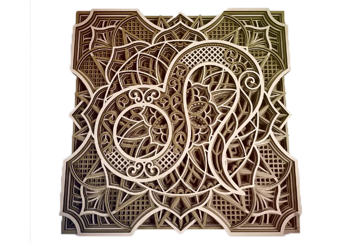 Este realizat din lemn prin debitare laser si suprapus pe mai multe straturi si printat UV.